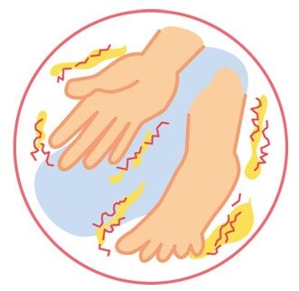 高血糖の影響で神経細胞の変異を起こす、または動脈硬化による血流悪化により神経細胞へ届く血液が不足するなどにより、末梢神経が異常を起こしている状態です。